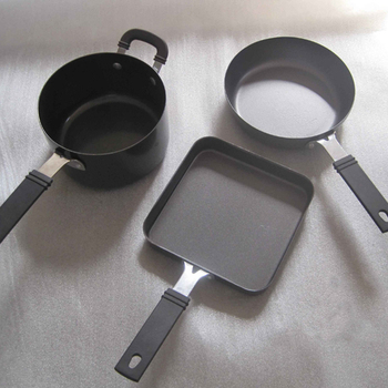 Mini plancha con recubrimiento antiadherente de acero al carbono, juego de utensilios de cocina, sartén cuadrada y sartén redonda con mango de silicona, 3 uds.