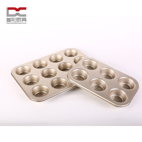 Estilo Popular oro cobre de metal de color de acero al carbono no revestimiento ronda de 6/12 copas Muffin Pan con fondo de malla