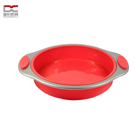 Molde redondo de silicona con recubrimiento antiadherente, bandeja de Pie de Pan con mango de silicona y acero al carbono, estándar de grado alimenticio, oferta de fábrica