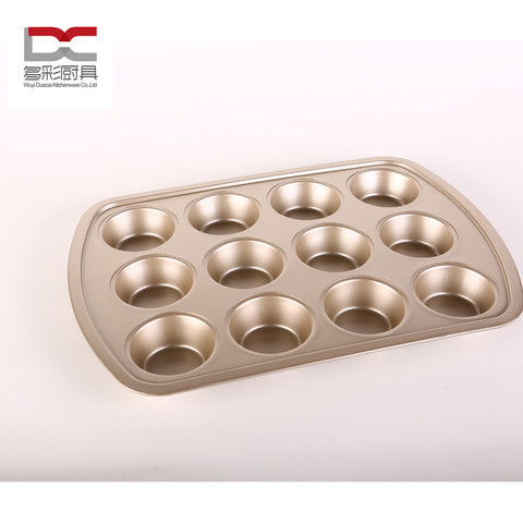 Shamapage antiadherente de Metal y acero al carbono, 12 tazas de Color dorado, redondo, para pasteles, muffins, bandeja para hornear, herramienta de cocina, nuevo estilo
