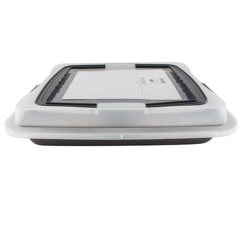 Bandeja para hornear de acero al carbono con recubrimiento antiadherente, cubrebocas DE SEGURIDAD táctil para alimentos con forma rectangular y cubierta de plástico con mango de transporte