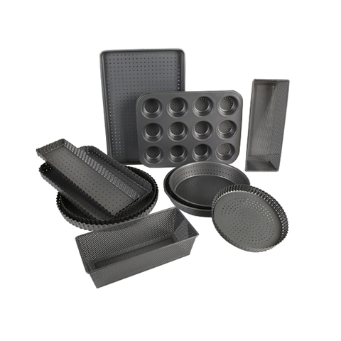 Juego de utensilios de baño de malla de acero al carbono con agujero antiadherente, bandeja redonda para Pie, rectangular, para magdalenas, galletas, 12 unidades